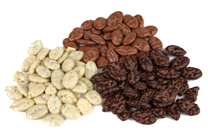 Bučno seme v beli čokoladi s kokosom. Sestavine: Bučno seme 32%, bela čokolada 63% (sladkor, kakavovo maslo, mleko v prahu, sirotka v prahu, emulgator: soja-lecitin, vanilijeva aroma), kokosova moka 2%, kokosova aroma, naravna aroma, maltodekstrin, stabilizator: gummi arabicum, sladkor, antioksidantno sredstvo: žveplov dioksid. Sredstva za glaziranje: šelak, glukozni sirup, palmovo olje, kokosovo olje.