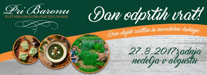 V nedeljo 27.8.2017 Izletniška ekološka kmetija Uranjek »Pri Baronu« ponovno prireja tradicionalni dogodek dan odprtih vrat, ki je tematsko obarvan – DAN DIVJIH RASTLIN in NOVODOBNE KUHINJE.